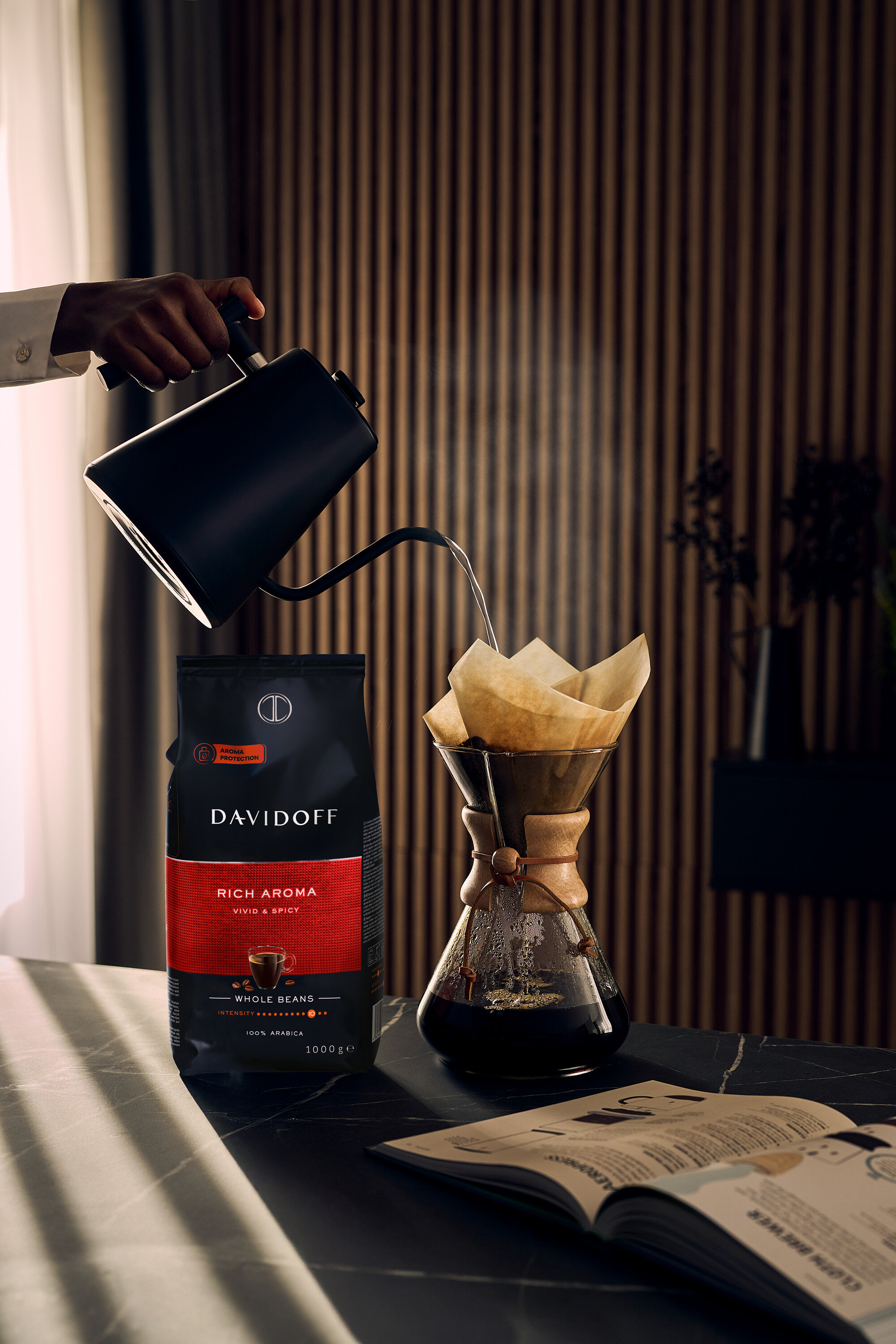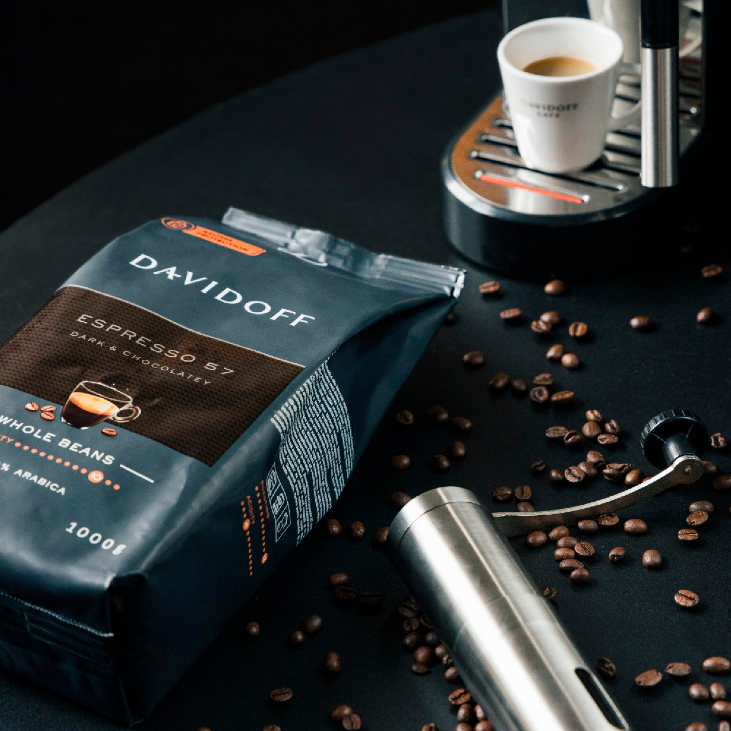 Poczuj wyjątkowy smak wysokiej jakości ziaren kawy z najlepszych regionów uprawnych świata w każdej filiżance i daj się oczarować najwyższej jakości DAVIDOFF CAFÉ. Odkryj cztery warianty – intensywne Espresso 57, delikatnie słodkie Origins Brazil Espresso, korzenne Rich Aroma i Caffè Crema Intense z nutami gorzkiej czekolady – idealne do ekspresów automatycznych, ekspresów z dźwignią, ekspresów przelewowych i ekspresów moka. Wszystkie rodzaje są dostępne zarówno w postaci ziaren.