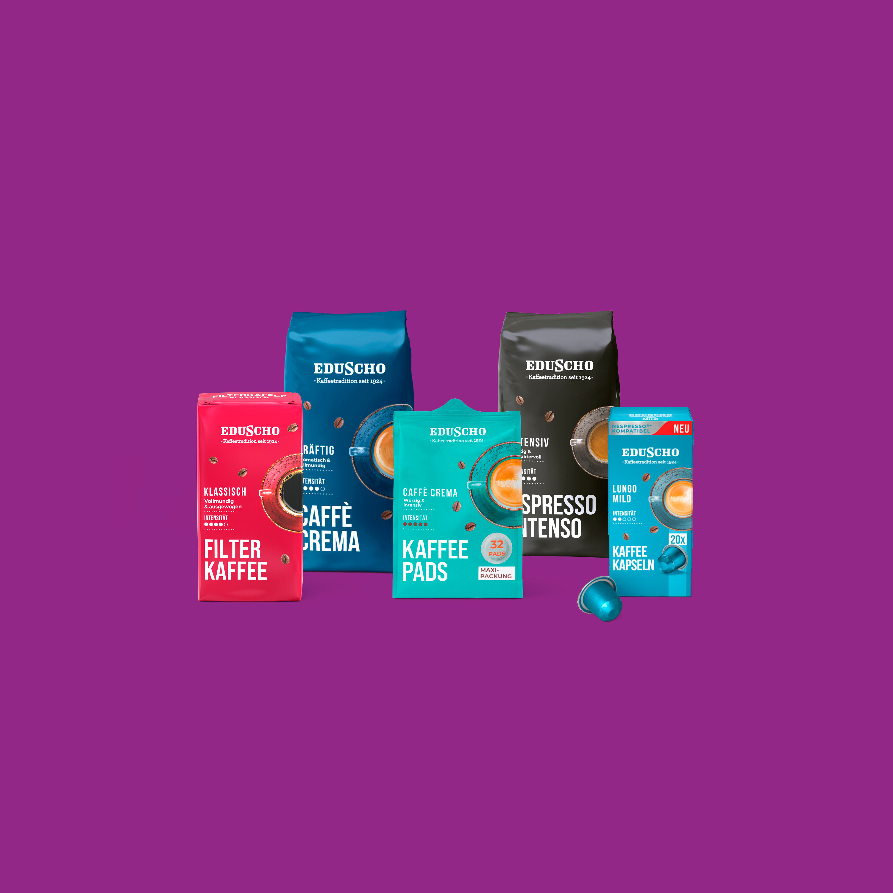 Nasza kawa Eduscho to pyszne rozwiązanie dla każdego gustu. Przekonaj się sam o naszym klasycznym, mocnym smaku kawy z bogatą cremą. Dostępne online lub w lokalnym supermarkecie.