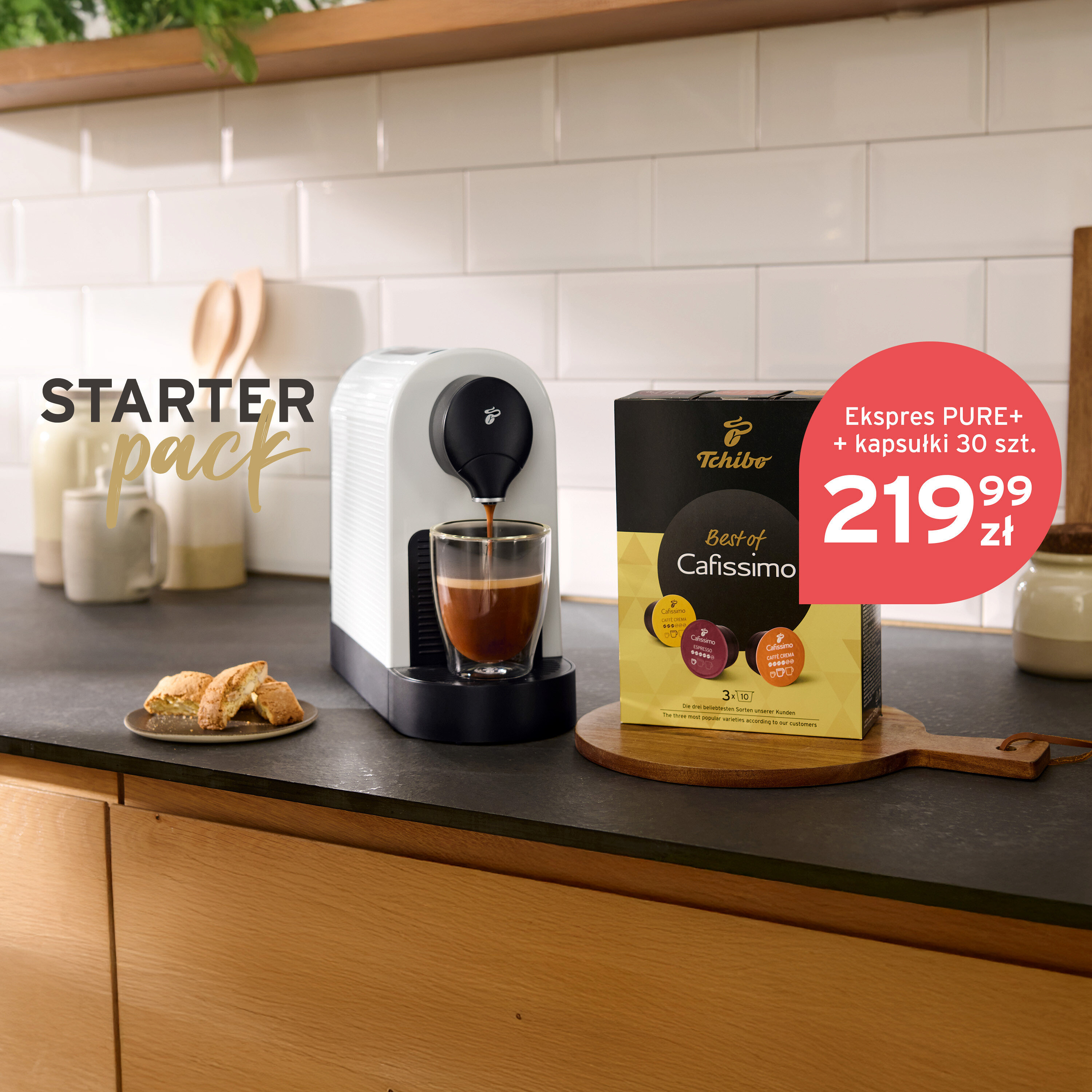 * Promocja trwa w dniach 07.04-18.05.2026 na stronie tchibo.pl oraz w sklepach stacjonarnych Tchibo. Akcja obejmuje wszystkie ekspresy kapsułkowe Cafissimo Pure+ i Cafissimo Milk. Zestaw kapsułek “Best of Cafissimo” zostanie dodany w koszyku w cenie 0 zł. Nie łączy się z innymi promocjami i rabatami. Szczegóły w regulaminie.