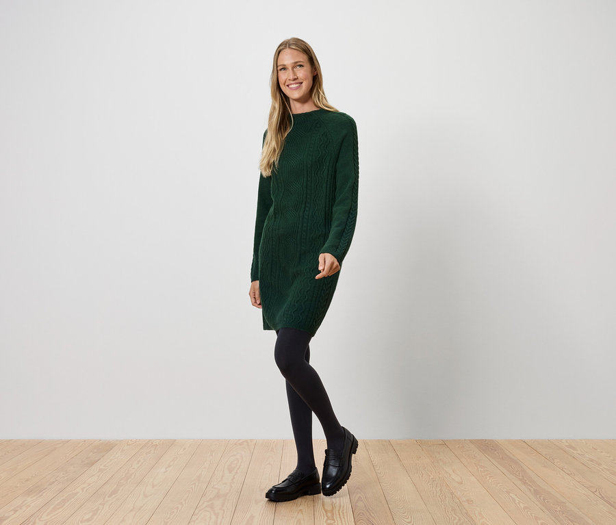 Sukienka z dzianiny z warkoczowym wzorem, ciemnozielona