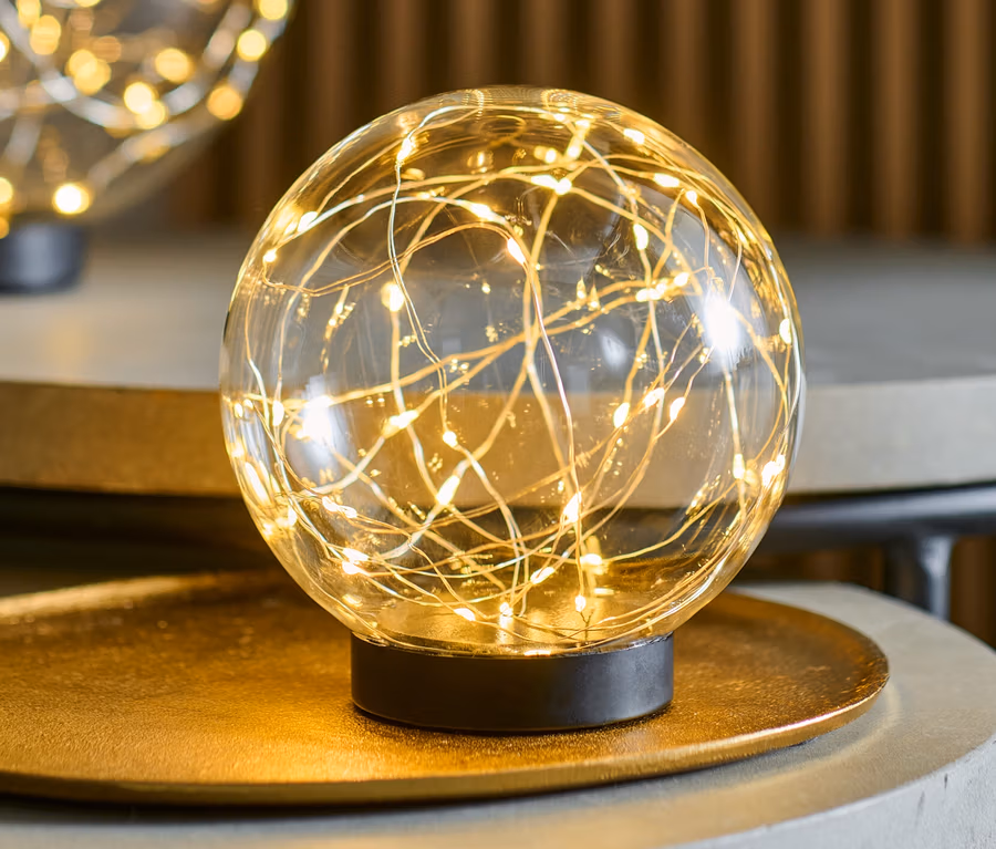 - Dekoracyjna, szklana kula LED zapewniająca nastrojowe akcenty w przestrzeni mieszkalnej