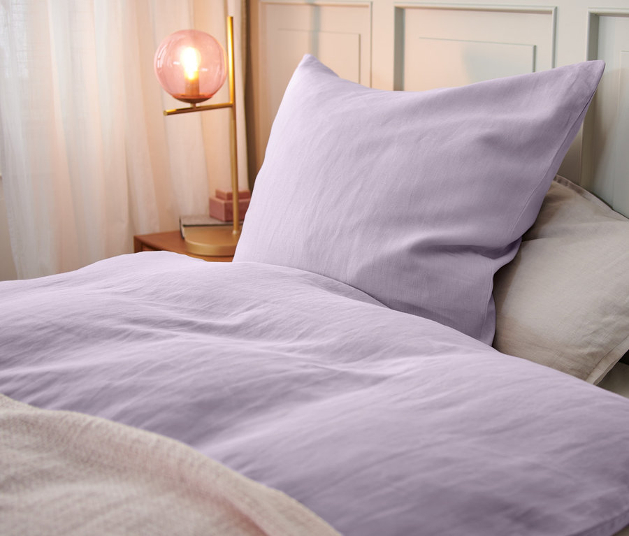 Pościel z pranego lnu, wielkość standardowa, liliowa