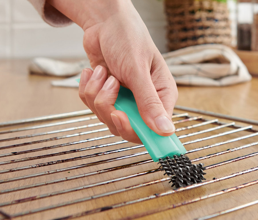 - szeroka końcówka służy do łatwego usuwania uporczywych zabrudzeń z rusztu piekarnika, a skrobak – do usuwania uporczywych zabrudzeń z blachy do pieczenia. Za pomocą szczotki z włosiem można usuwać silne zabrudzenia. Szczotka nadaje się do użytku na sucho i na mokro.