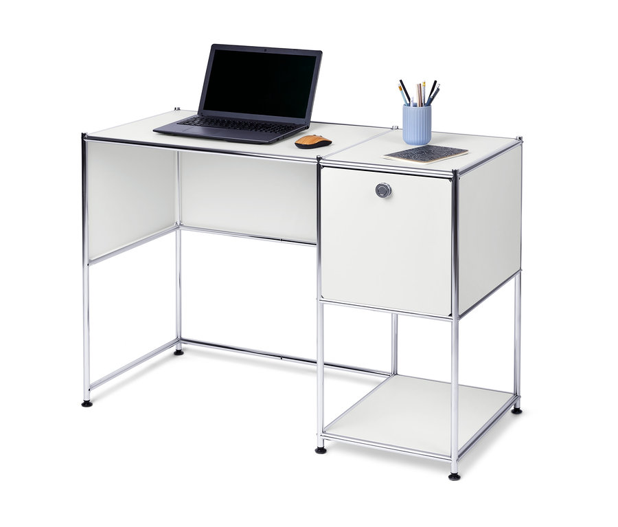 Metalowe biurko »CN3« z klapą, białe