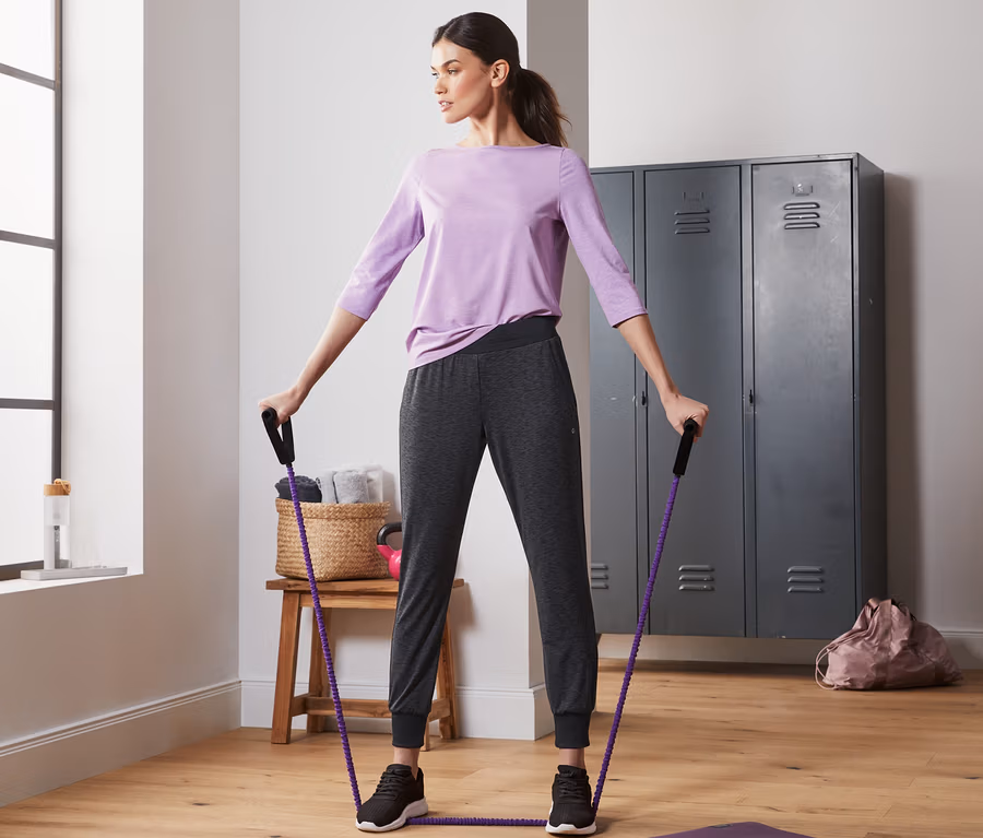 - Miękki, elastyczny materiał z zawartością włókna Creora® – zapewnia optymalną swobodę ruchów