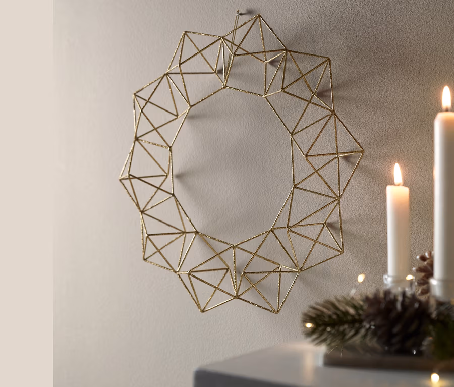- Dekoracyjny wieniec w eleganckim, połyskującym odcieniu złota