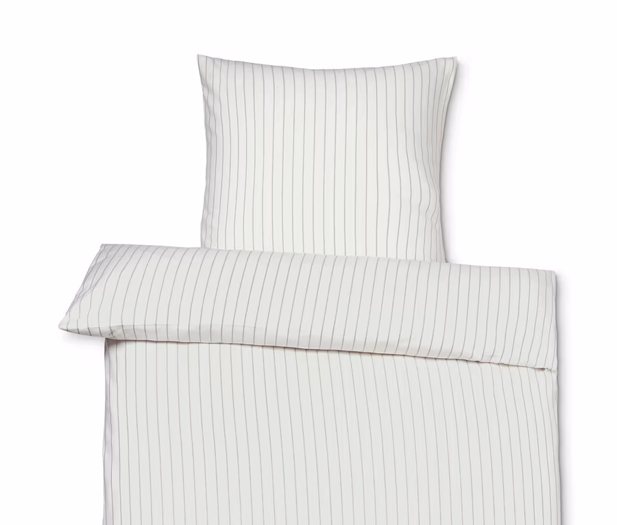 Pościel premium ze szlachetnej flaneli, biało-ciemnoszara w paski, wielkość standardowa