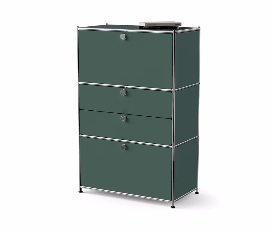 Metalowa komoda „CN3” z 2 klapami i 2 szufladami, oliwkowa