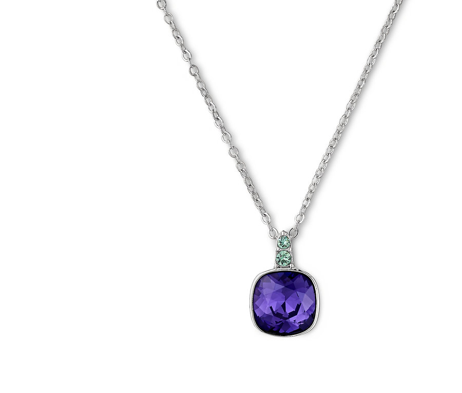 - Naszyjnik z elegancką, błyszczącą, fioletową zawieszką z zielonymi akcentami