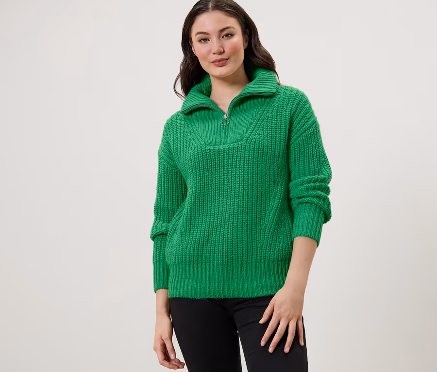 Sweter o grubym splocie z kołnierzem typu troyer