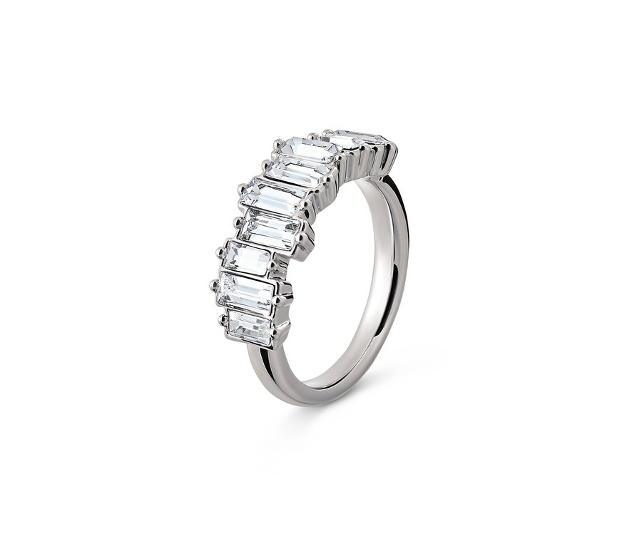 Pierścionek, uszlachetniony rodem, ze szklanymi kryształkami