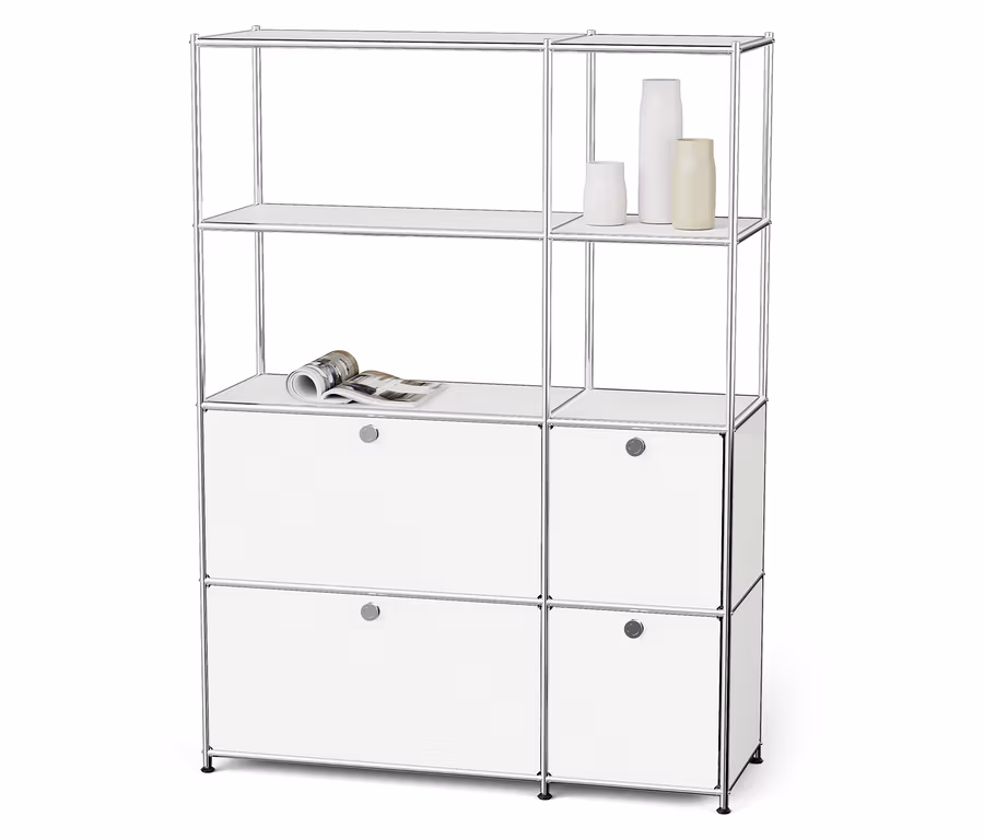 Metalowy regał »CN3« z 4 komorami z klapami, biały