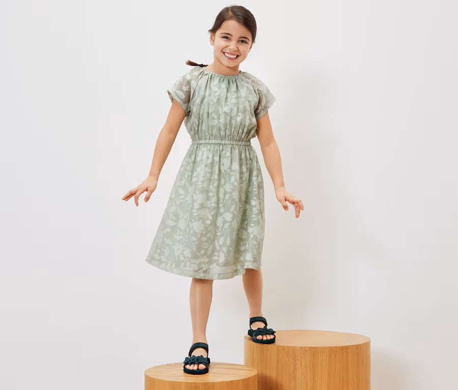 - Sukienka z tkaniny wypalanej z kwiatowym nadrukiem na całej powierzchni