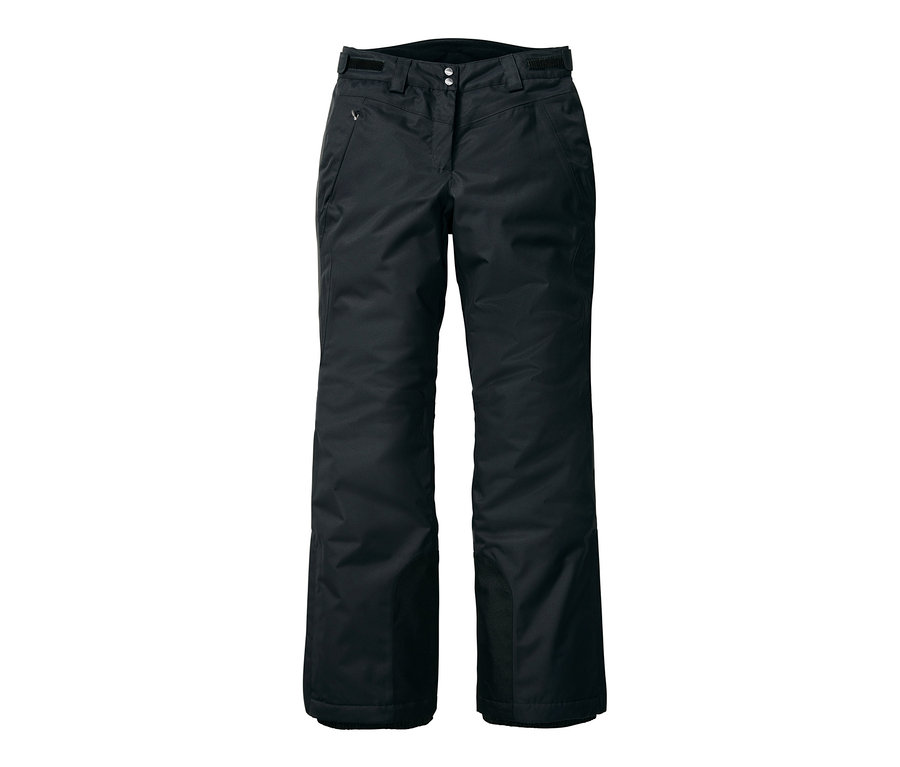 Spodnie są zapinane na kryty zamek błyskawiczny i mają z boku wpuszczaną kieszeń zapinaną na zamek błyskawiczny. Podwyższony tył chroniący okolice nerek jest podszyty podszewką z polaru, a zapięcie na rzep w pasie umożliwia regulację obwodu. Wymodelowana partia kolan ułatwia schylanie, a na wewnętrznej stronie nogawek spodnie mają wytrzymałe wzmocnienie. Kryty zamek błyskawiczny ułatwia wkładanie i zdejmowanie, a nieprzemakalny śniegołap ma antypoślizgowe gumowanie.