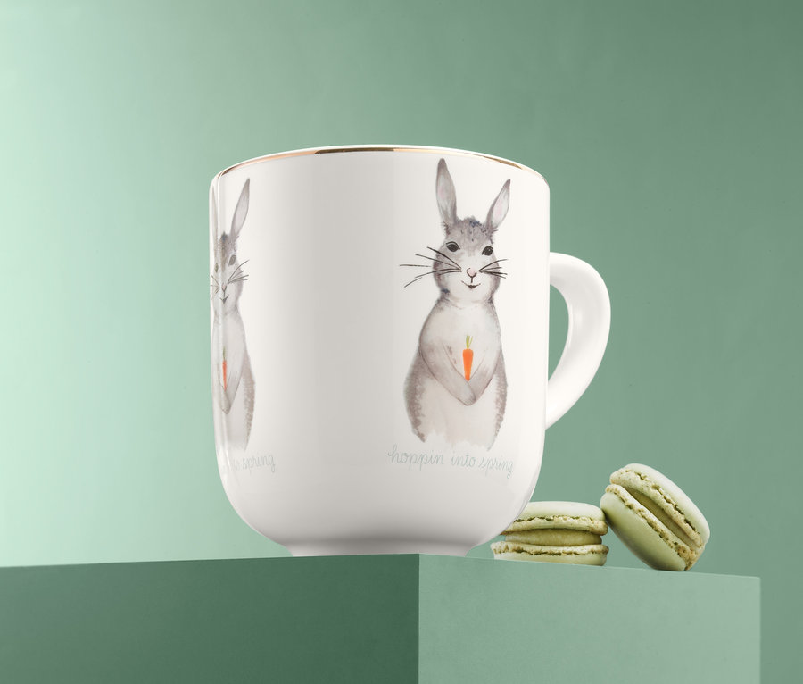 - Błyszczące, złote zdobienie z wielobarwnym, wielkanocnym motywem akwarelowym i napisem