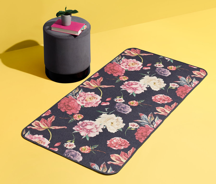 Czarny dywan w kwiaty, ok. 140 x 70 cm