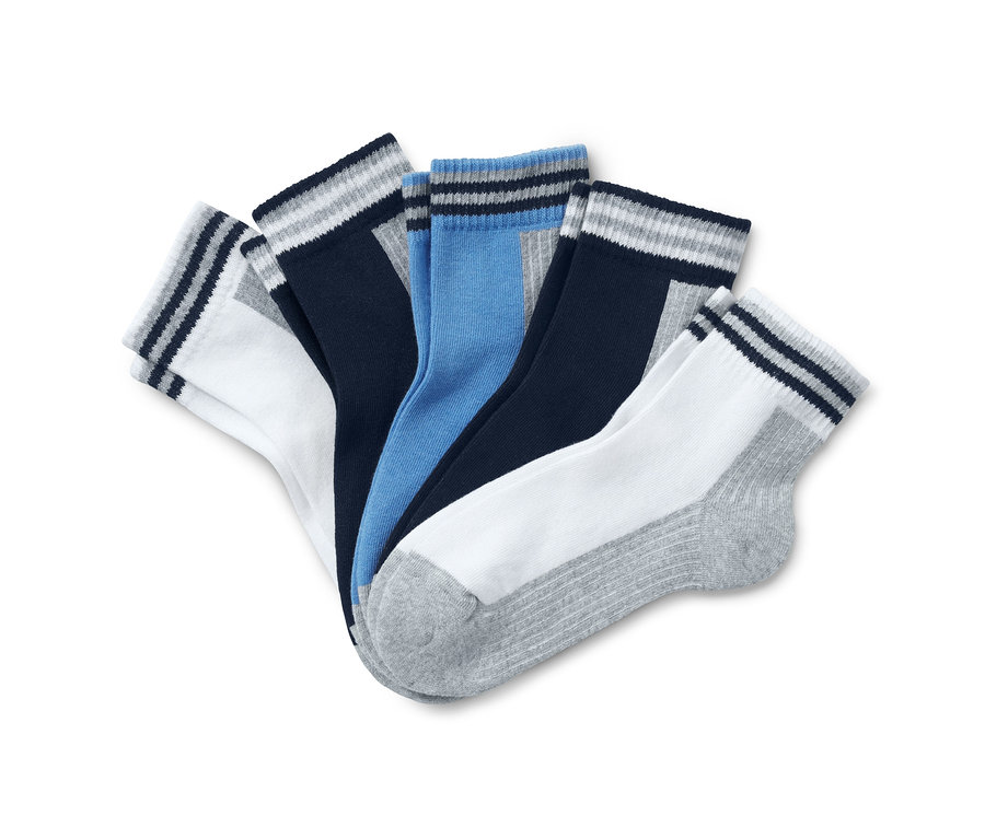 Dzięki tym pięciu parom skarpetek do butów sportowych, dzieci mogą dać z siebie wszystko podczas uprawiania sportu. Wewnątrz mają miękką wyściółkę z tkaniny frotte, a dzięki wysokiej zawartości bawełny są wyjątkowo przyjazne dla skóry. Szeroki, wygodny ściągacz nie uciska, a wyjątkowo płaski szew na palcach jest praktycznie niewyczuwalny. Palce i pięty skarpetek są wzmocnione. Skarpetki dla dzieci wykonane są z bawełny ekologicznej i elastanu, co zapewnia odporność na deformacje i doskonałe dopasowanie przy wysokim komforcie noszenia.