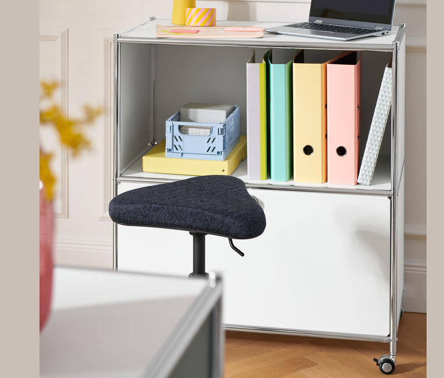 - Z nóżkami z tworzywa sztucznego o regulowanej wysokości i 4 kółkami, w tym 2 z blokadą – szafkę można wyposażyć w dowolne elementy według uznania