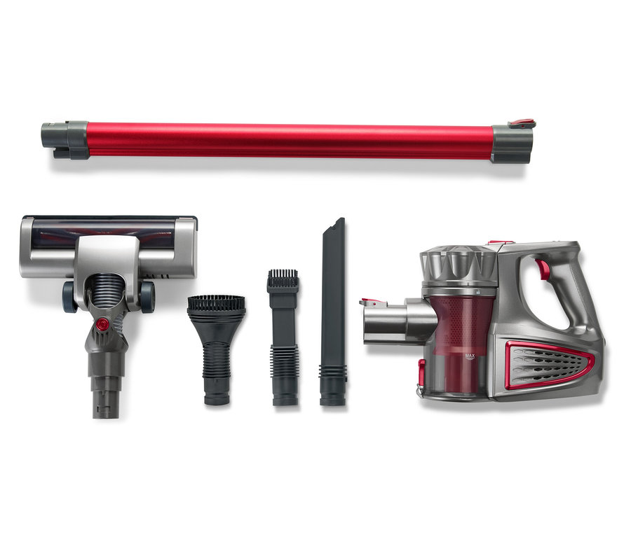 Odkurzacz pracuje niezawodnie dzięki technologii cyklonowej i można do dostosować do każdej sytuacji. Może być używany jako klasyczny odkurzacz lub jako odkurzacz ręczny bez rurki przedłużającej. A z dyszą do podłóg, uniwersalną szczotką, dyszą szczelinową i dyszą do tapicerki, ma odpowiednią końcówkę do każdego zastosowania. Akumulator litowo-jonowy o pojemności 2200 mAh zapewnia czas pracy około 20 minut, a w trybie ECO wystarcza nawet na 40 minut. Bezworkowy pojemnik na zanieczyszczenia ma wyjmowany filtr, który jest bardzo łatwy do czyszczenia.