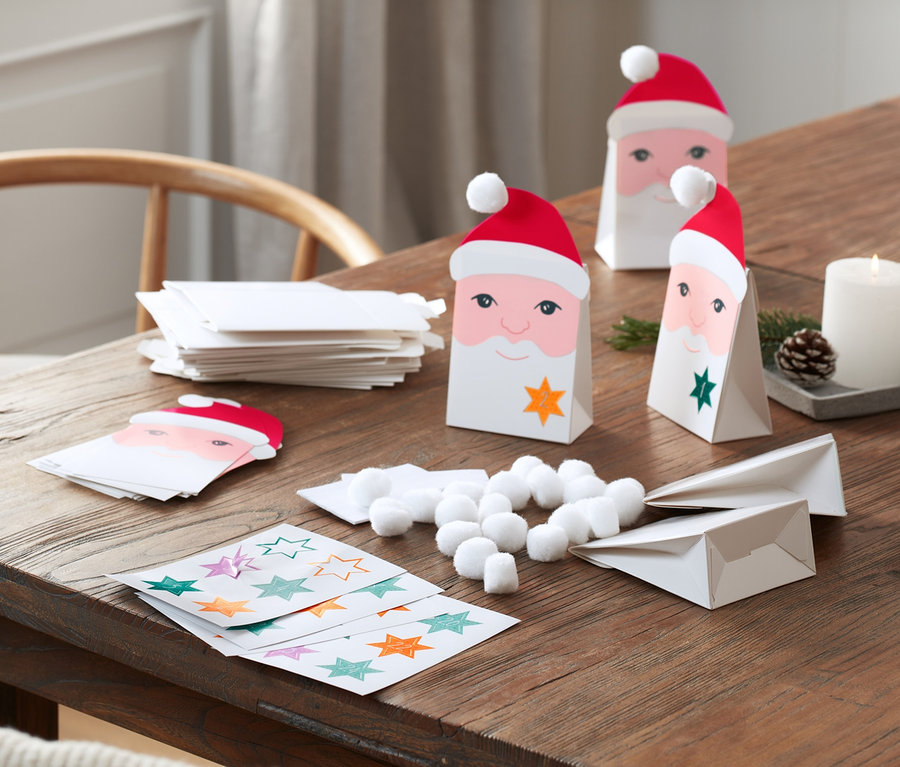 - Wystarczy tylko rozłożyć pudełka i ozdobić je Mikołajami, pomponami oraz cyframi
