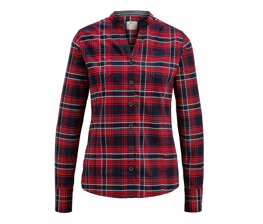 Kto powiedział, że styl drwala jest zarezerwowany tylko dla brodatych mężczyzn? Bawełniana flanela w kratę świetnie wygląda również na kobietach. Zwłaszcza jeśli ma wstawki chambray w kontrastowym kolorze na kołnierzu i mankietach rękawów - jak ta koszulowa bluzka flanelowa ze stójką i dekoltem w serek.