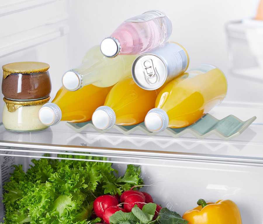 - Pomoc w układaniu butelek i puszek – oszczędność miejsca bez ślizgania się i brzęczenia w lodówce