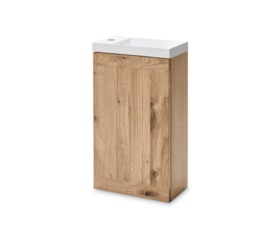 - Korpus z płyty drewnopochodnej posiadającej certyfikat FSC® z fornirem dębowym posiadającym certyfikat FSC®