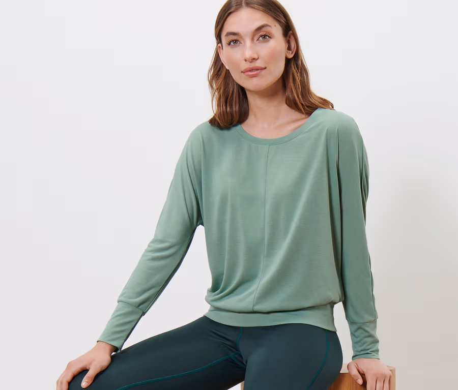 Koszulka do jogi i treningu, szałwiowa zieleń