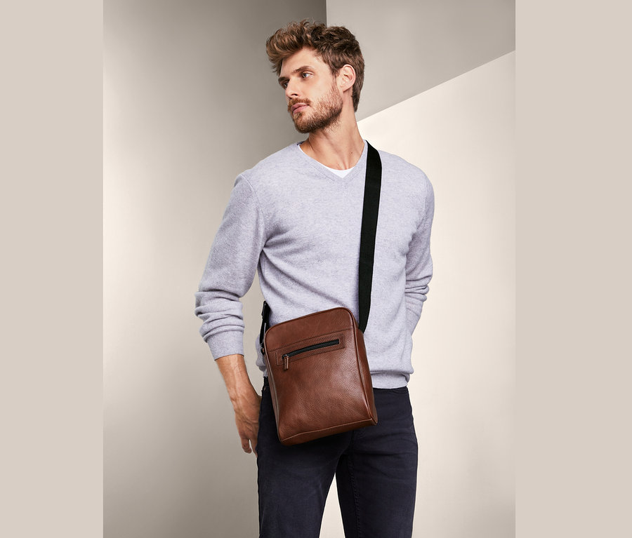 Męska, skórzana torba noszona przez ramię na skos