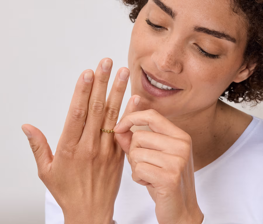 - Uwaga: zdejmować pierścionek przed umyciem rąk, ponieważ woda może wniknąć w koraliki