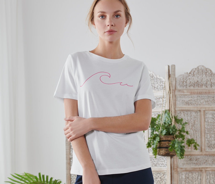 - Okrągłe wycięcie pod szyją wykończone ściągaczem