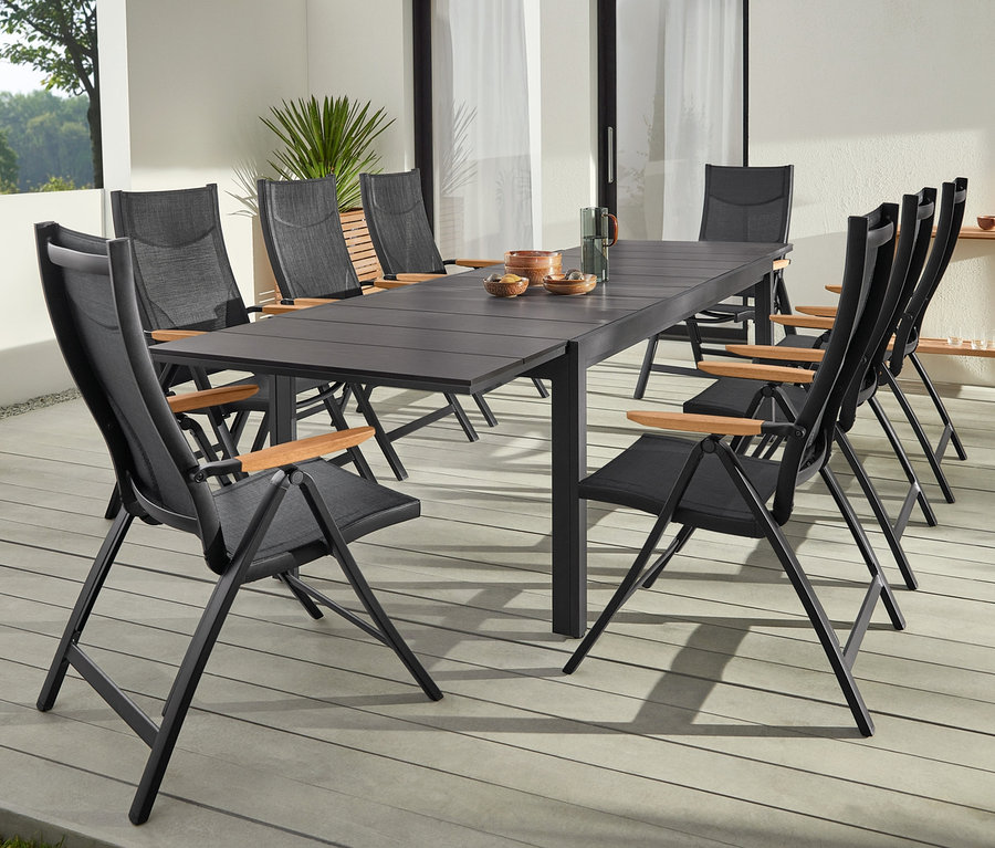 - Blat z desek z płyty Duraboard – wyjątkowo wytrzymałej mieszanki drewna i tworzywa sztucznego, odpornej na zadrapania i czynniki atmosferyczne