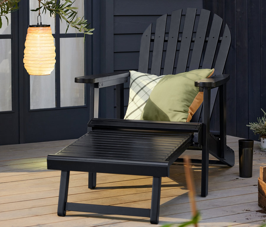 Krzesło ogrodowe Adirondack z wysuwanym podnóżkiem, czarne