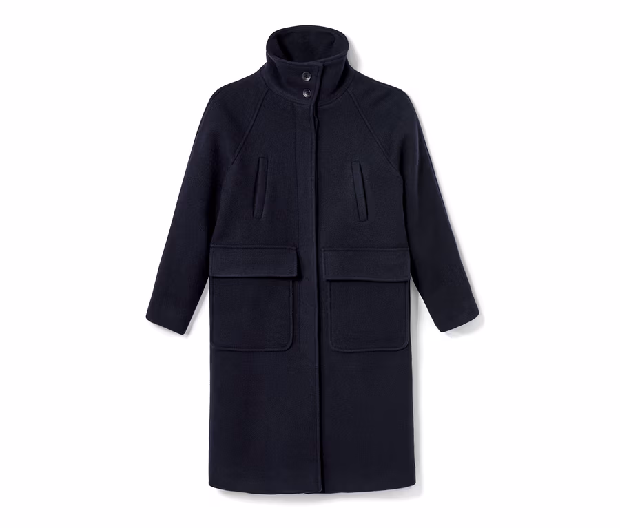 - Płaszcz, który nigdy nie wychodzi z mody: z wełny pochodzącej z recyklingu, utkanej w wyjątkowo gęstą i odporną na odkształcenia tkaninę. Sprawdzi się także podczas chłodnych dni. Lekko opadające ramiona i wysoka stójka w połączeniu z szalem stworzą idealną, jesienną stylizację.