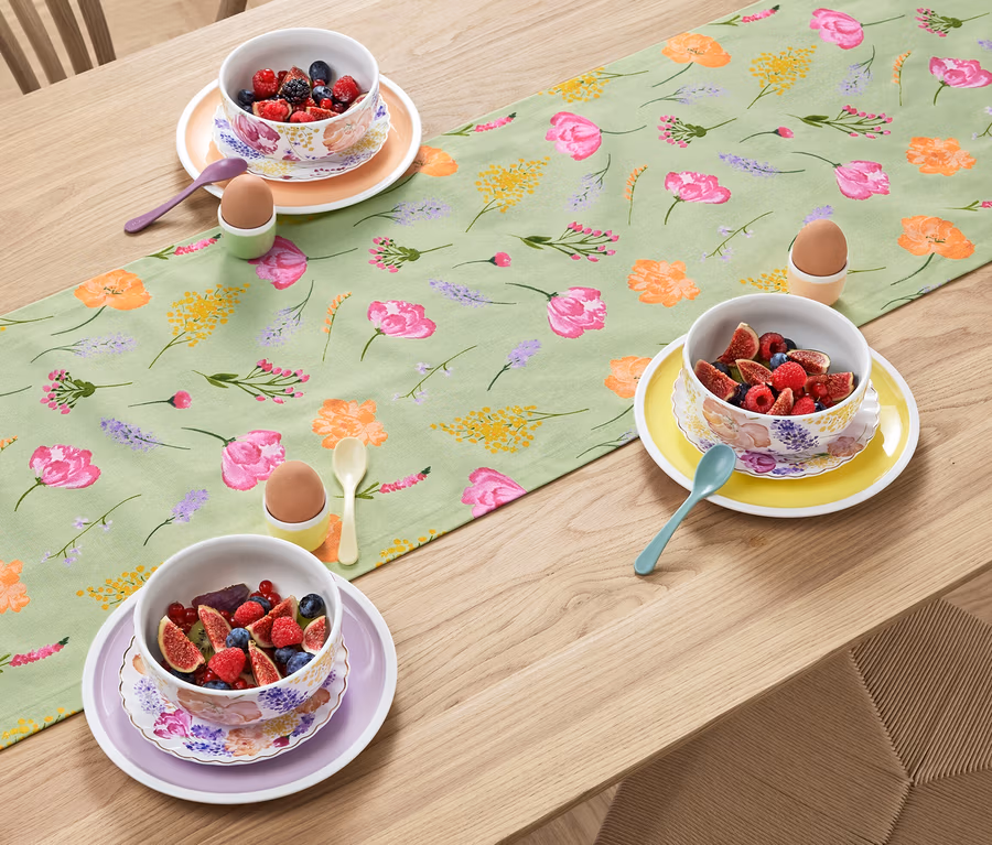 Bieżnik, szałwiowy z kwiatowym nadrukiem