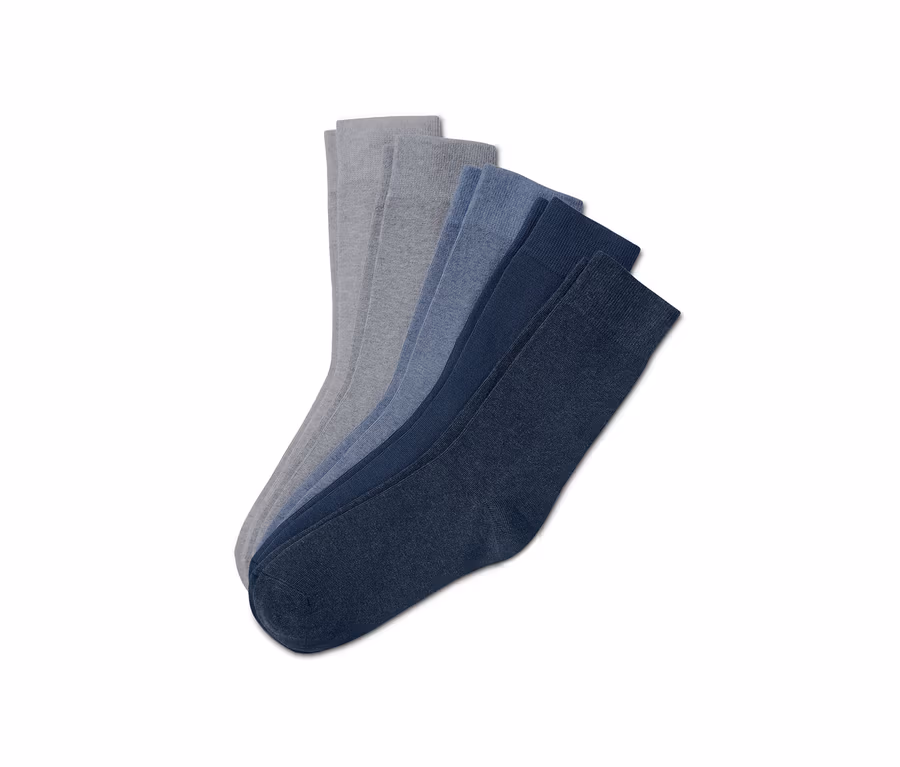 Uniwersalne, wygodne skarpety na każdą okazję: ten zestaw pięciu par skarpet przekonuje wysoką zawartością bawełny ekologicznej i elastycznymi, niezsuwającymi się ściągaczami. Płaski szew na palcach skarpetek jest praktycznie niewyczuwalny, a ich pięty i palce są wzmocnione.