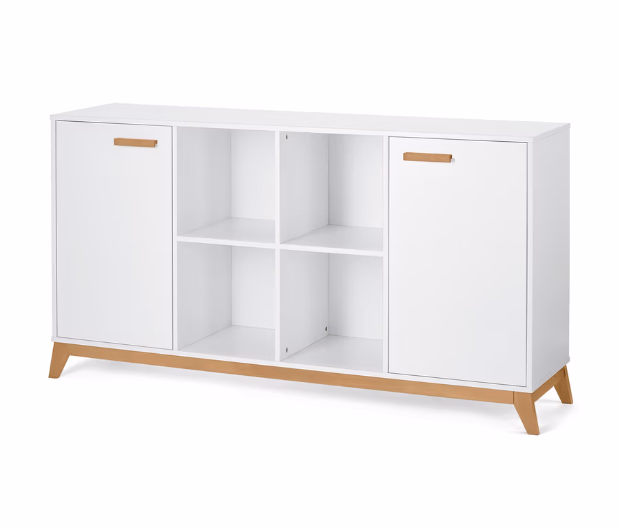 - W części środkowej 4 otwarte półki – np. na pudła do przechowywania