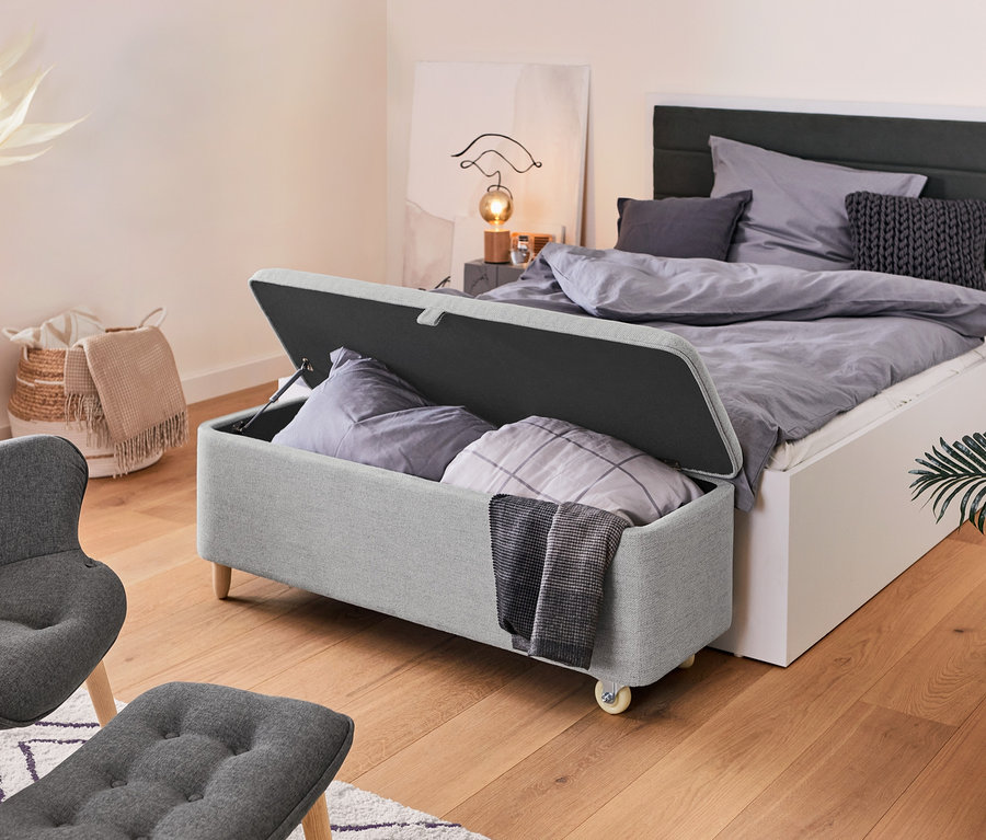 - Idealna do przechowywania poduszek, koca lub pościeli w sypialni