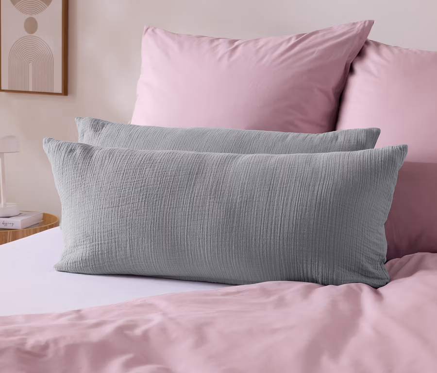 Muślinowe poszewki na poduszki, 2 sztuki, szare, ok. 80 x 40 cm
