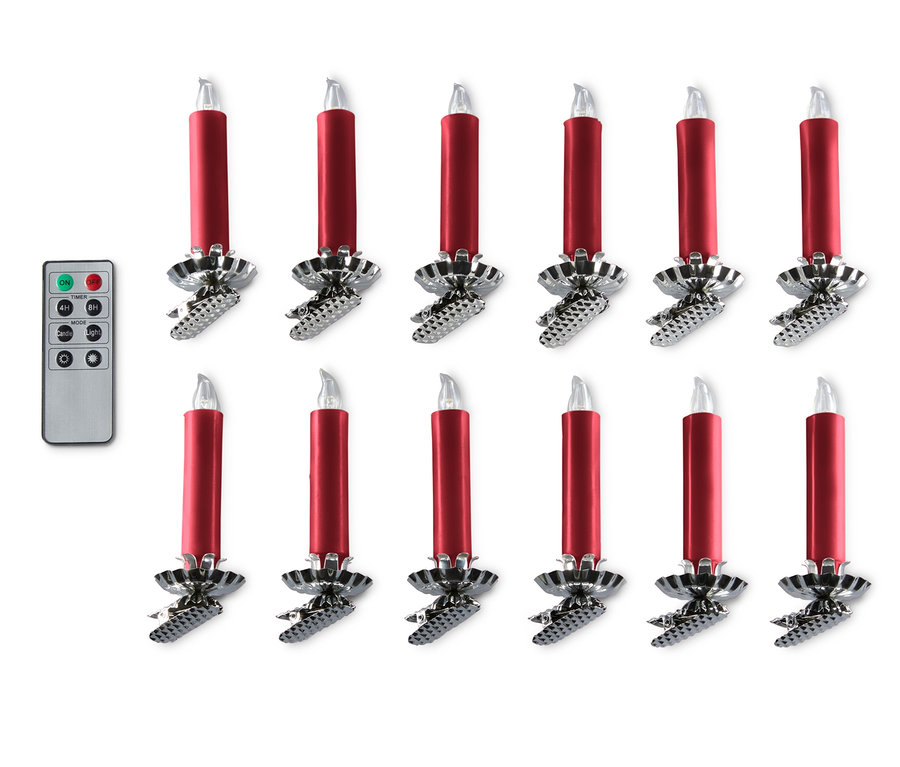 Świeczki choinkowe LED, 12 sztuk, czerwone