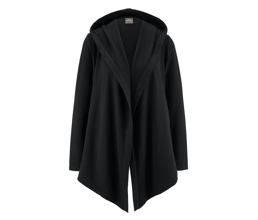 Ten kardigan dresowy jest wyjątkowo luźny i wygodny - doskonały do uprawiania sportu lub otulenia się po treningu. Został wykonany z tkaniny o wysokiej zawartości bawełny ekologicznej, a elastan zapewnia odporność na deformacje, doskonałe dopasowanie i pełną swobodę ruchów. Bluza ma przedłużony przód, ramiona w lekko kimonowym kroju i kaptur. Po bokach znajdują się dwie kieszenie wpuszczane zapinane na zamek błyskawiczny.