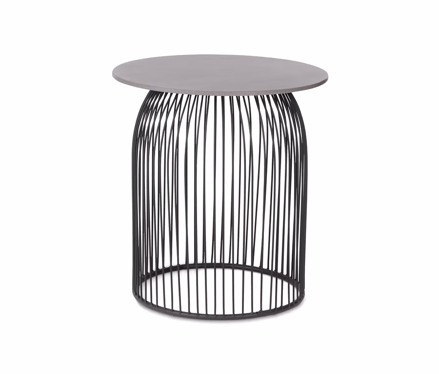 Stół ogrodowy z piękną, ażurową ramą jest wyjątkowo uniwersalny i funkcjonalny. Jego okrągły blat wykonany jest z odpornego na czynniki atmosferyczne i łatwego w pielęgnacji cementu włóknistego, co powoduje że nadaje się do ogrodu i na taras. Stół sprawdzi się również w pomieszczeniach. Ażurowa rama z równolegle ułożonymi, metalowymi prętami w kolorze czarnym posiada stopki z regulacją wysokości.