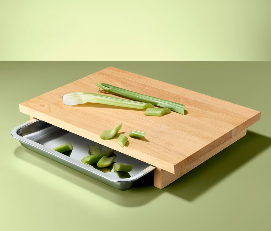 Pomoc w kuchni jest zawsze mile widziana - nawet jeżeli chodzi o deskę do krojenia. Ta deska z drewna kauczukowego oferuje obszerną powierzchnię do krojenia, a dodatkowo punktuje zintegrowanym pojemnikiem na pokrojone produkty lub odpadki.