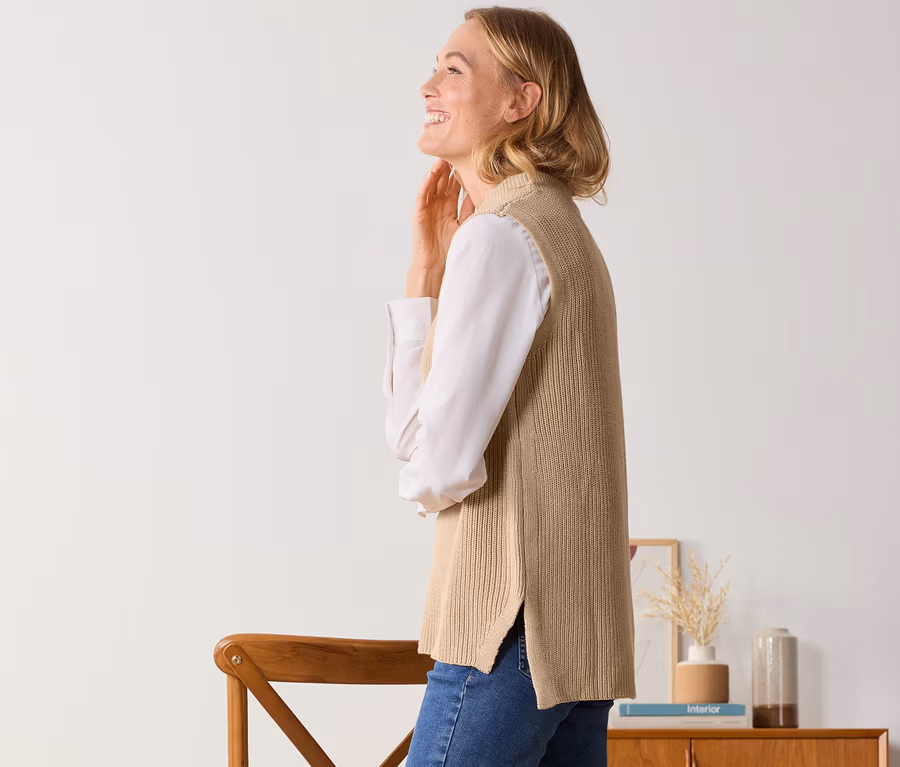 - Dzianinowa kamizelka z zawartością bawełny ekologicznej
