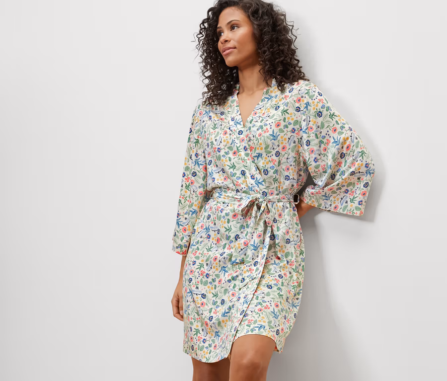 - Ten szlafrok zawiera włókno z drewna pochodzącego ze zrównoważonej gospodarki leśnej.