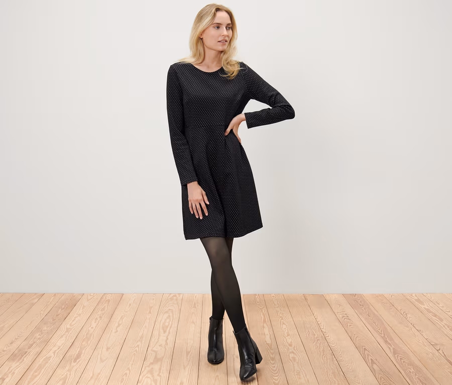 • Szew działowy na wysokości talii i doszywana spódnica w kształcie litery A