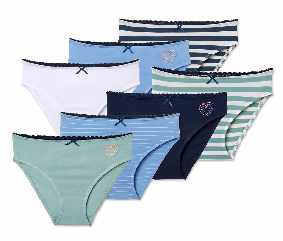 Wysokiej jakości siedem par dziewczęcych fig w modnych kolorach staną się ulubioną bielizną każdej dziewczynki. Dwie pary ozdobione są motywem serca w kolorach tęczy.