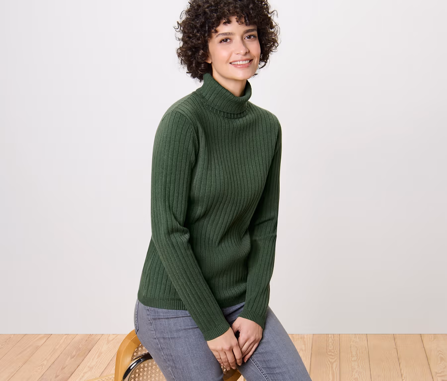 Golf z dzianiny o splocie ściągaczowym, zielony