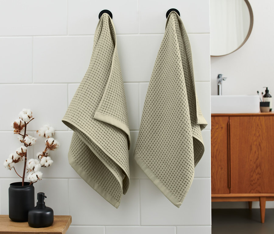 Ręczniki do rąk premium z piki o splocie waflowym, 2 sztuki, piaskowozielone