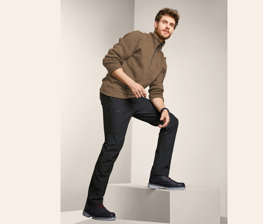 - Elastyczne wykończenie w pasie z regulacją obwodu zapewnia idealne dopasowanie – spodnie nie uciskają